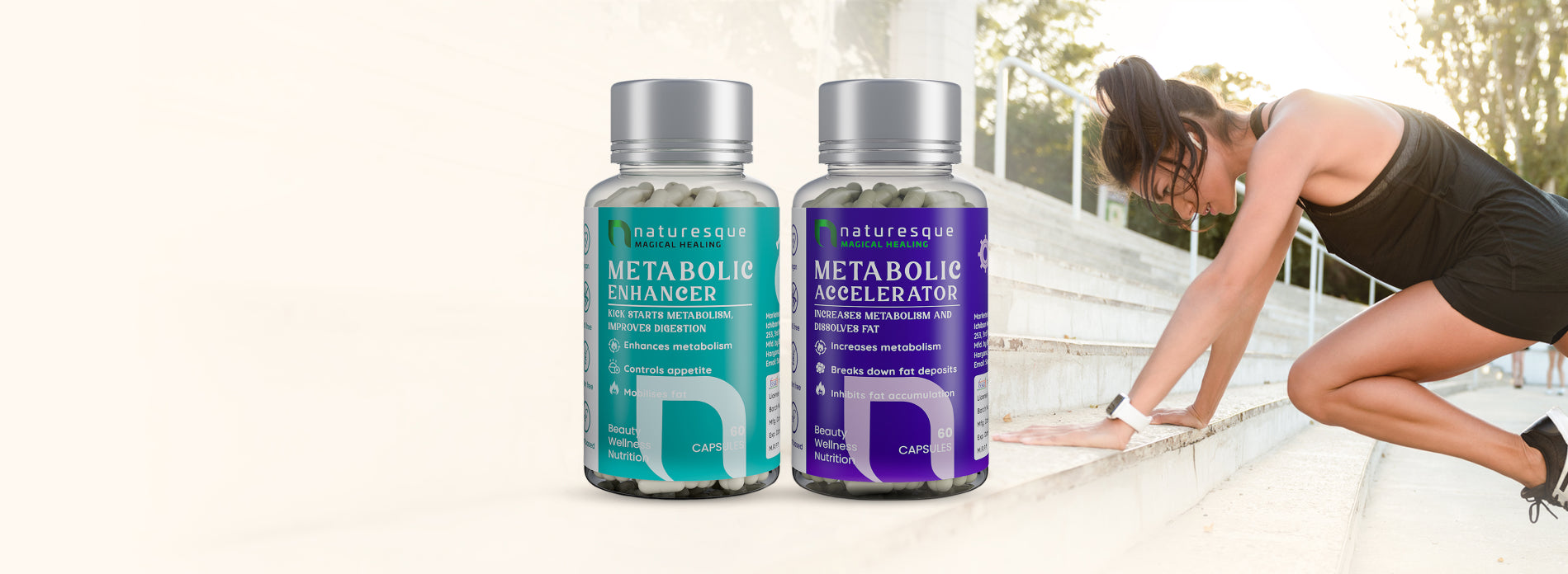 Naturesque Metabolic Trio is formulated with thermogenic herbs that directly target fat cells, breaking them down for removal through improved bowel movements. It also boosts your metabolism, ensuring sustained fat loss, which diet and exercise alone might not fully achieve.